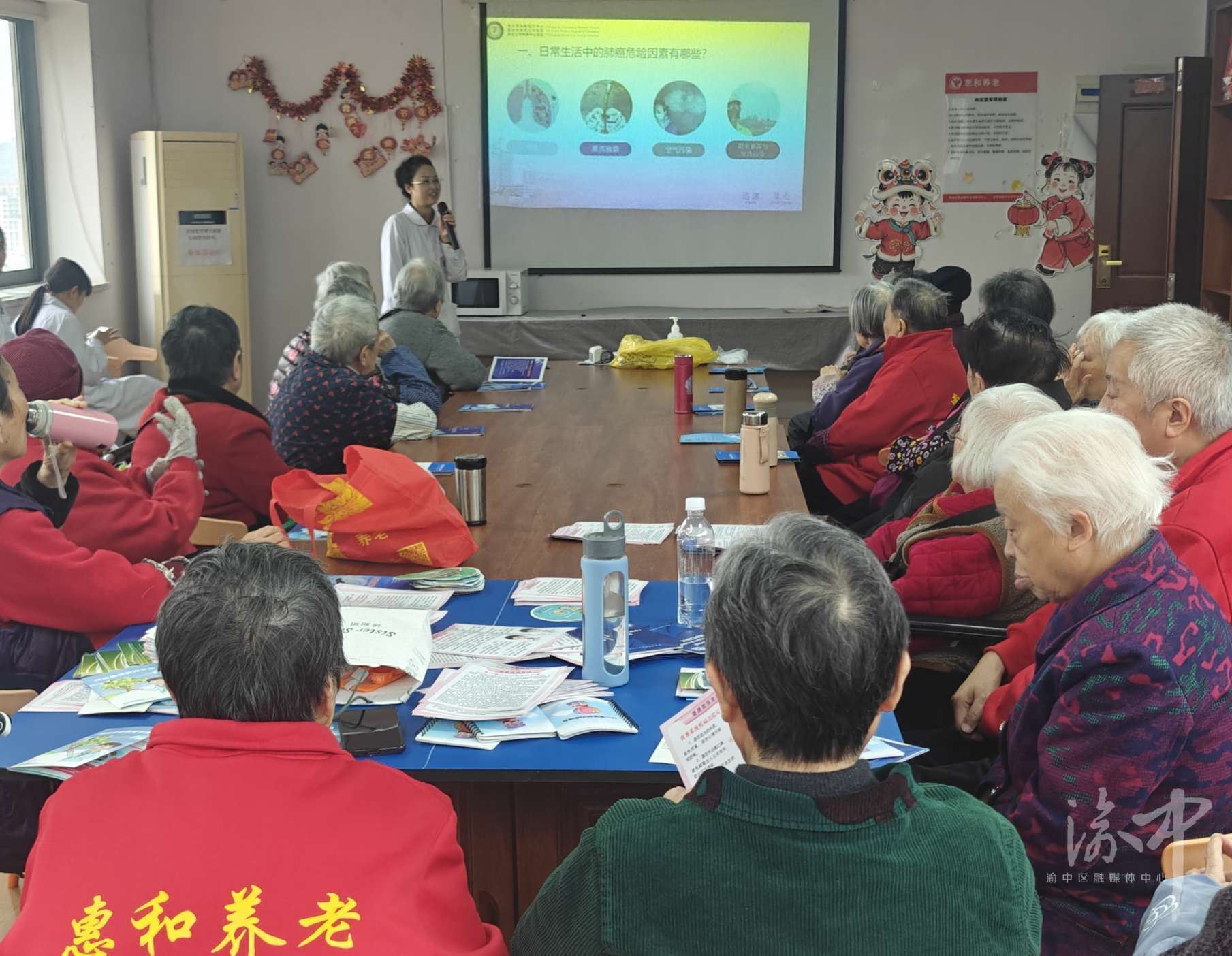 44031 次浏览 11-21呼吸科专家讲解肺癌防控知识。11月14日,国际肺癌日来临之际,渝中区两路口街道桂花园新村社区新时代文明实践站联合重庆市第四人民医院,走进惠合养老院开展“肺癌防控从我做起”主题咨询义诊活动,用专业医疗服