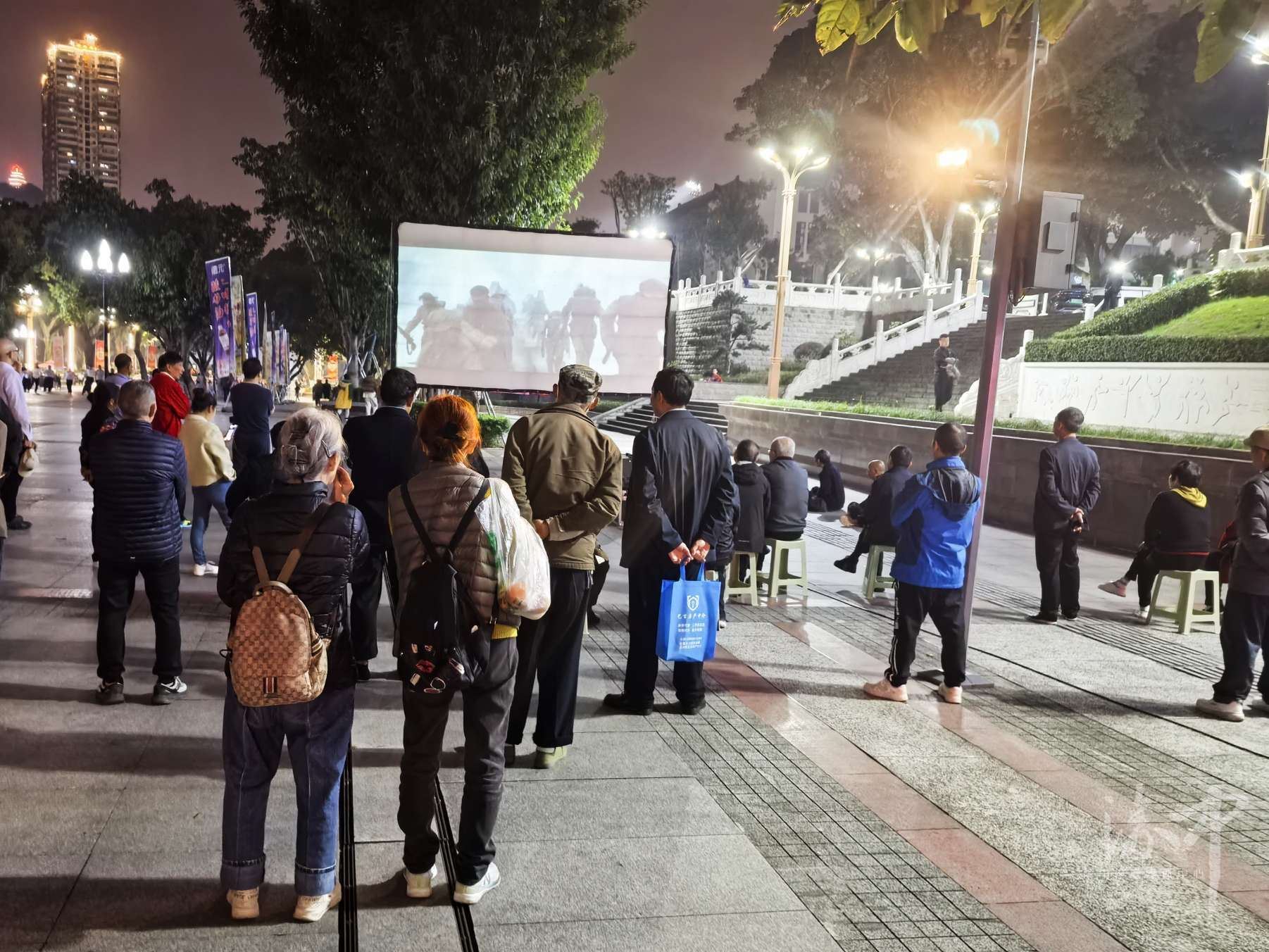 8166 次浏览 11-21居民们认真观看电影。11月15日,渝中区两路口街道重庆村社区新时代文明实践站联合重庆村社区综合文化服务中心开展户外电影放映活动,邀请居民观看红色影片《金刚川》,传承红色基因,丰富居民精神文化生活。影片