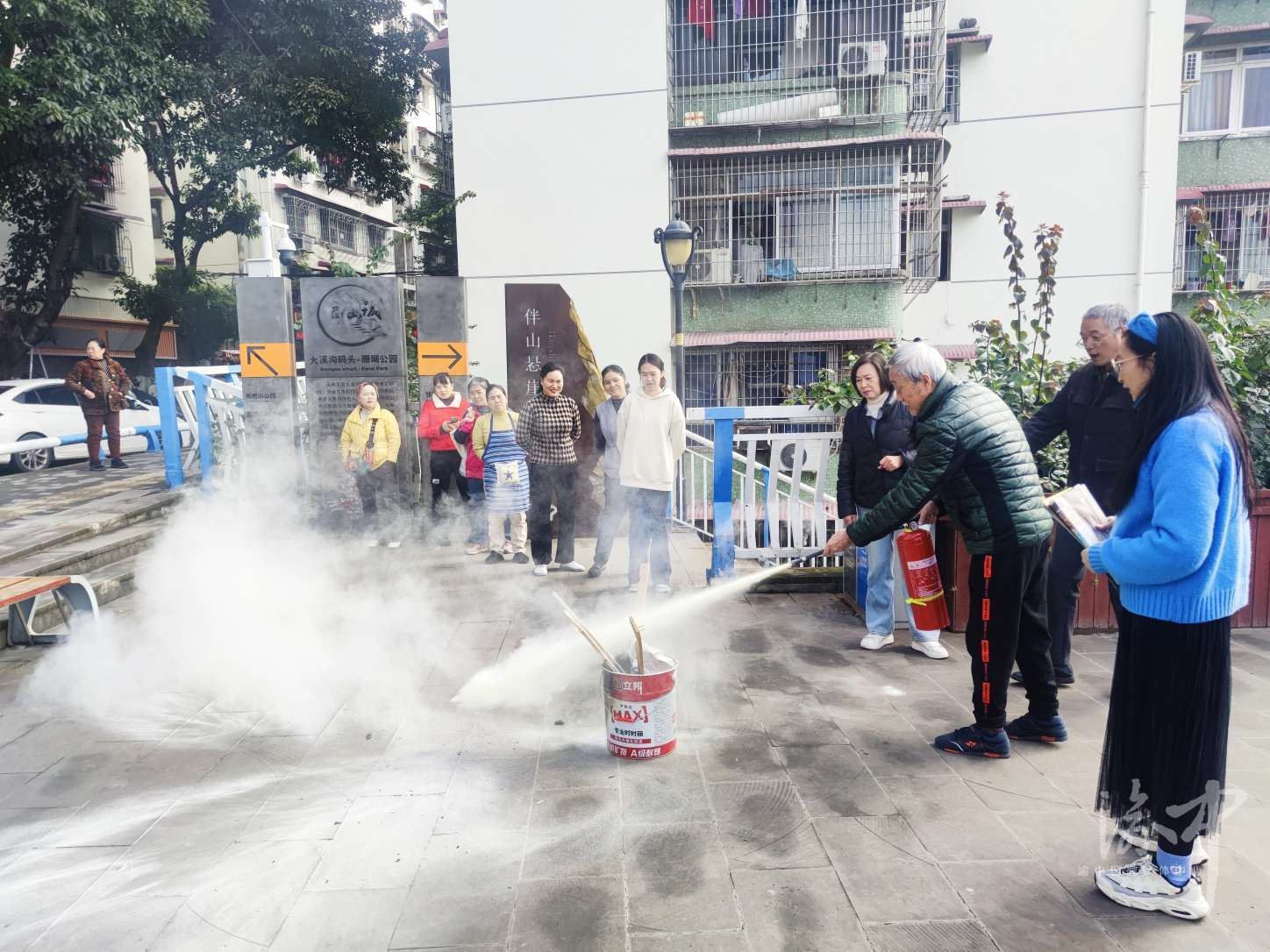 居民在消防志愿者的指导下,“快准狠”扑灭火源。11月21日,渝中区两路口街道枇杷山正街社区组织开展消防应急演练暨“119消防安全月”主题宣传活动,将安全知识送到居民身边。“初期火灾是扑救黄金期,掌握正