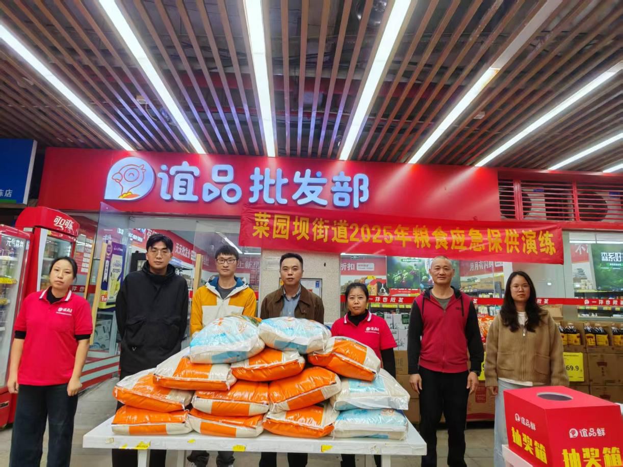 为切实检验并提升菜园坝街道在市场异常波动情况下的粮食供给保障能力,有效应对因突发事件可能引发的粮食调配紧张问题,全力维护市场稳定和供应秩序,10月31日,菜园坝街道组织粮食应急供应网点谊品批发部开展了